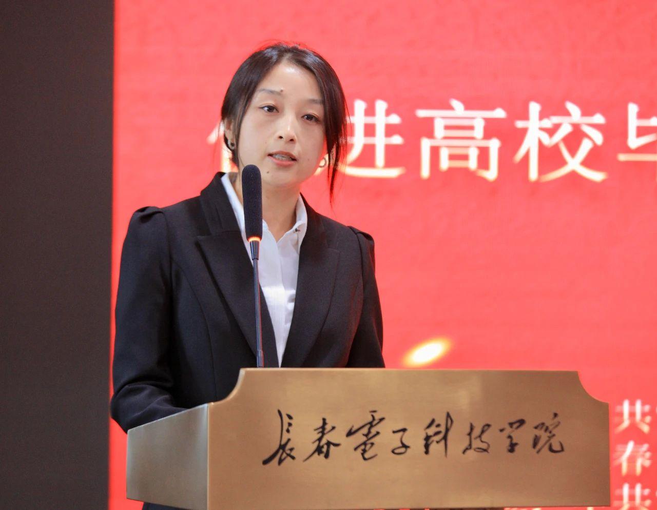 長春電子科技學(xué)院黨委副書記王耀遠代表區(qū)內(nèi)高校發(fā)言。他強調(diào),學(xué)校認真落實吉林省人才強省就業(yè)創(chuàng)業(yè)工作決策部署,在服務(wù)和助力寬城區(qū)產(chǎn)業(yè)發(fā)展方面,始終秉持著積極的態(tài)度,堅持以知識服務(wù)產(chǎn)業(yè)發(fā)展,以技術(shù)促進地方經(jīng)濟建設(shè)的原則,緊密對接寬城區(qū)重點產(chǎn)業(yè)和特色產(chǎn)業(yè),深入實施“服務(wù)地方能力提升工程”,通過優(yōu)化專業(yè)設(shè)置、加強實踐教學(xué)等方式,積極推動科研成果轉(zhuǎn)化,與寬城區(qū)的眾多企業(yè)開展深度合作,吸引更多畢業(yè)生留聚寬城就業(yè)創(chuàng)業(yè),為寬城區(qū)的產(chǎn)業(yè)發(fā)展提供堅實的人才支撐。