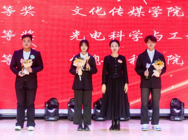 繼續(xù)教育學(xué)院院長(zhǎng)盧文昊為小品大賽獲獎(jiǎng)?wù)哳C獎(jiǎng)