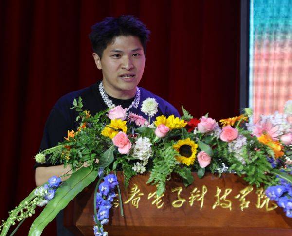 黨委宣傳部部長(zhǎng)、團(tuán)委書(shū)記姜威為配音大賽獲獎(jiǎng)?wù)哳C獎(jiǎng)