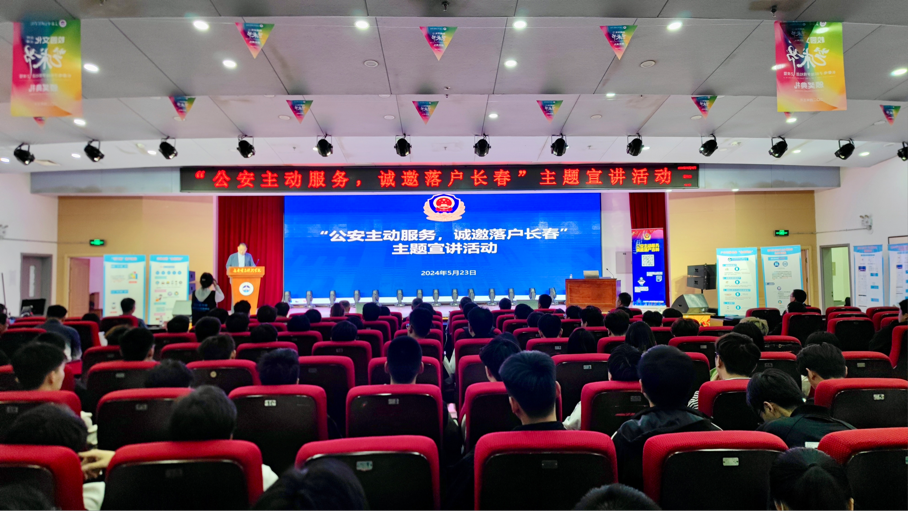 為深入貫徹吉林省委、省政府關(guān)于“苦口婆心留人才,海納百川引人才,廣開(kāi)思路育人才,心胸寬廣聚人才”的人才強(qiáng)省戰(zhàn)略,5月23日下午,學(xué)校特別邀請(qǐng)長(zhǎng)春市寬城區(qū)公安分局高偉副局長(zhǎng)親率分局戶(hù)籍大隊(duì)大隊(duì)長(zhǎng)趙雙成、蘭家鎮(zhèn)派出所所長(zhǎng)張興宇,以及區(qū)戶(hù)籍大隊(duì)和蘭家派出所戶(hù)籍科等一行5人,到我校開(kāi)展畢業(yè)生留長(zhǎng)政策宣講暨“公安主動(dòng)服務(wù),誠(chéng)邀落戶(hù)長(zhǎng)春”主題宣傳活動(dòng)。學(xué)校副校長(zhǎng)付忠臣、學(xué)生工作處處長(zhǎng)范爽、保衛(wèi)處處長(zhǎng)朱德威、各學(xué)院書(shū)記、副書(shū)記、輔導(dǎo)員和學(xué)生代表共計(jì)400余人參會(huì)。