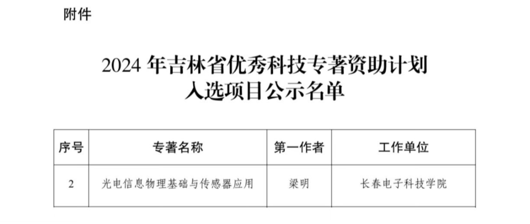 近日,吉林省科學(xué)技術(shù)協(xié)會(huì)發(fā)布了《2024年吉林省優(yōu)秀科技專著資助計(jì)劃擬入選項(xiàng)目公示》,由我校光電科學(xué)與工程學(xué)院梁明老師申報(bào)的《光電信息物理基礎(chǔ)與傳感器應(yīng)用》科技專著項(xiàng)目成功立項(xiàng)。立項(xiàng)成功的4個(gè)高校及單位中,我校是唯一一所民辦大學(xué)。