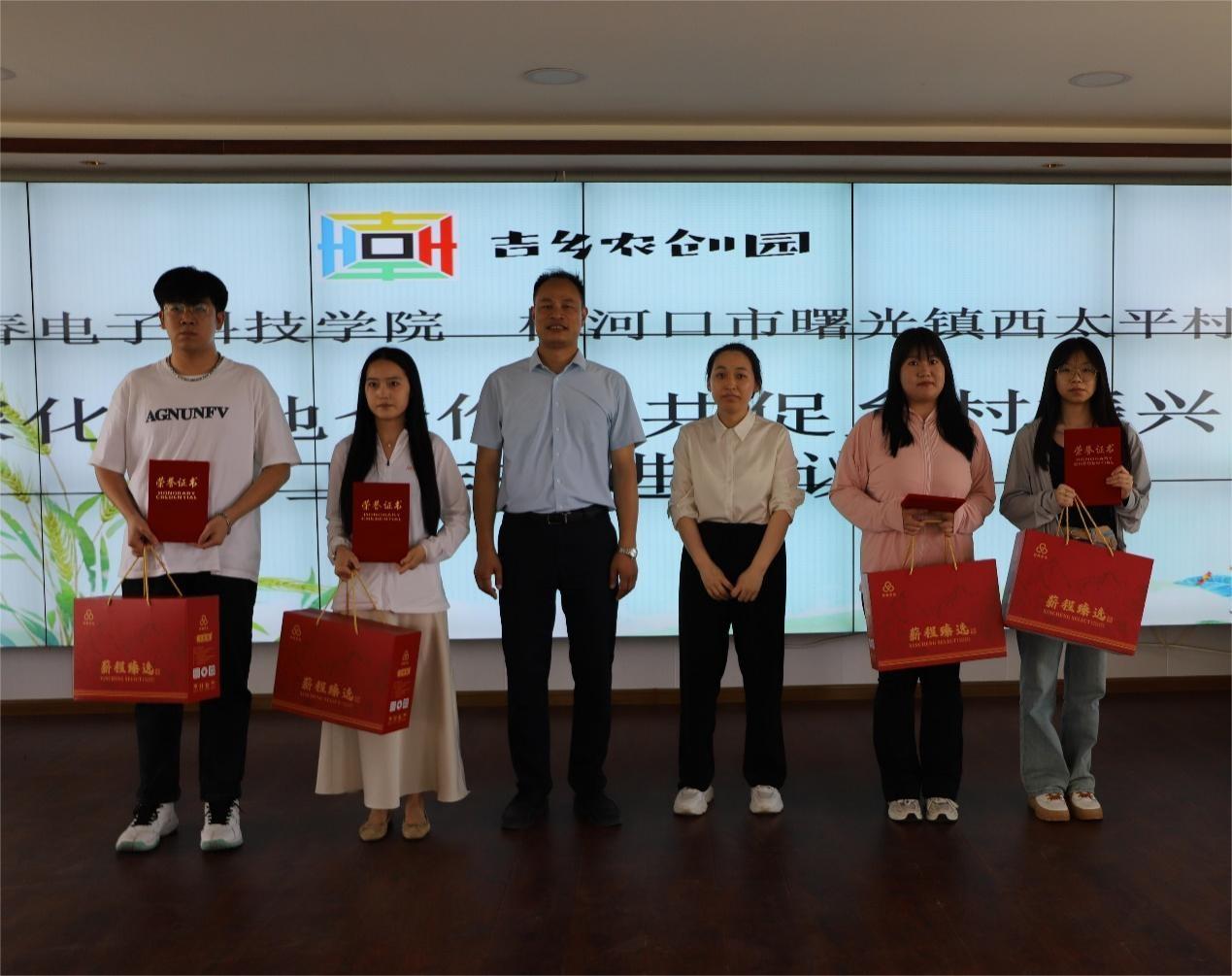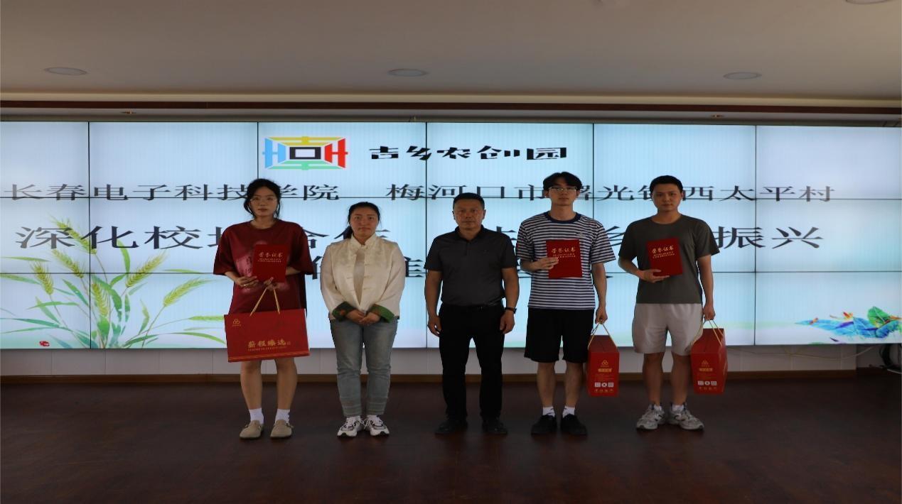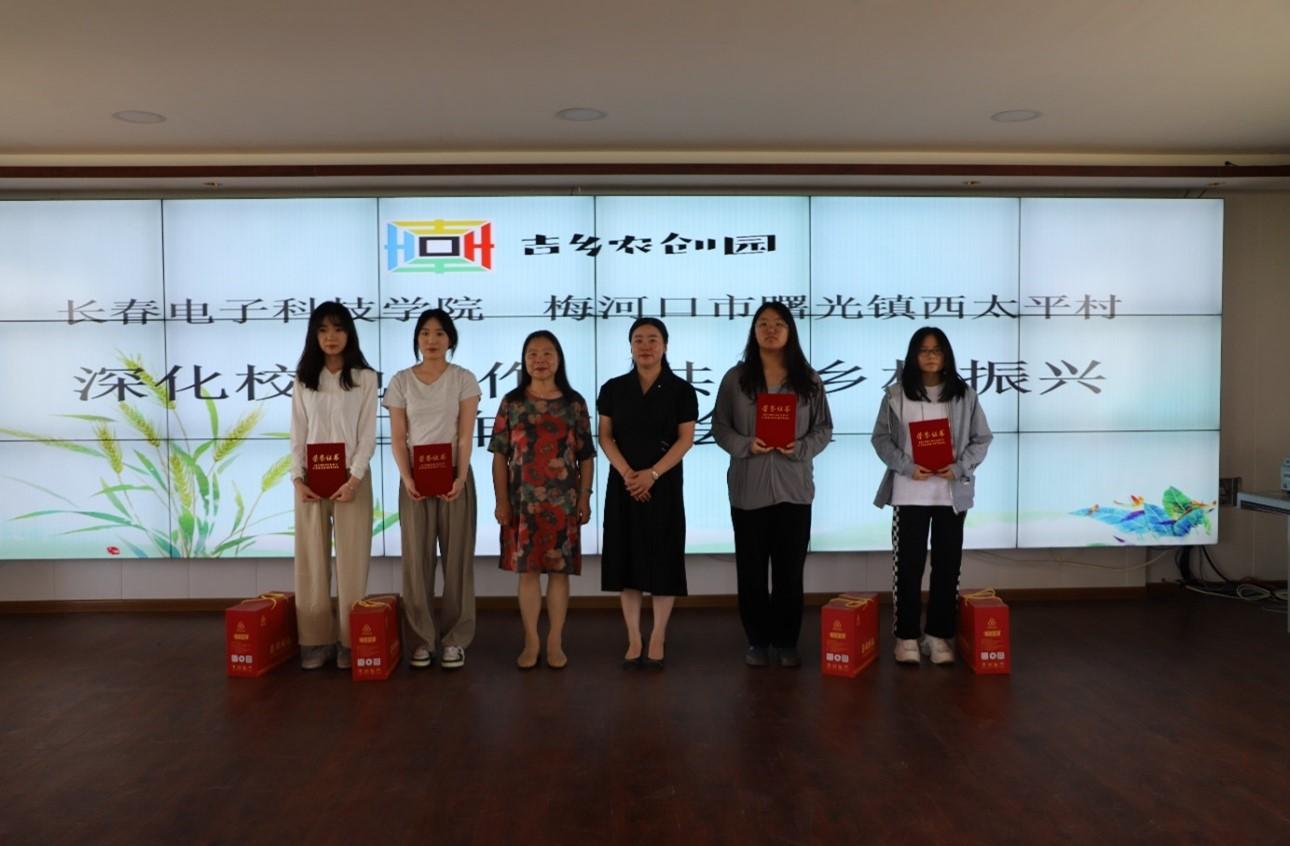 接下來,長(zhǎng)春電子科技學(xué)院聘請(qǐng)曙光鎮(zhèn)人大主席劉勝男為學(xué)院行業(yè)指導(dǎo)教師,王玉英院長(zhǎng)為劉勝男頒發(fā)了聘書。