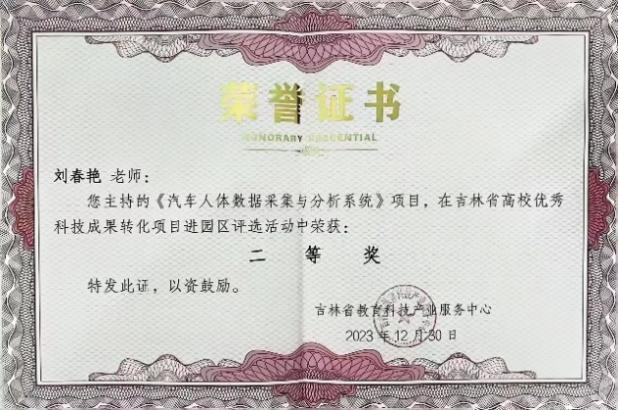春華秋實(shí)碩果香,璀璨金秋送喜報(bào)。近日,由我校劉春艷老師帶隊(duì)的長(zhǎng)春市科技局“重點(diǎn)研發(fā)計(jì)劃應(yīng)用專項(xiàng)——汽車人體數(shù)據(jù)采集與分析系統(tǒng)”順利結(jié)題。