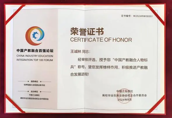王誠(chéng)林老師作為機(jī)電工程學(xué)院產(chǎn)教融合工作的杰出代表,他積極推動(dòng)校企合作,構(gòu)建實(shí)踐平臺(tái),致力于將尖端技術(shù)與課程教學(xué)相融合,為學(xué)生提供眾多實(shí)習(xí)和實(shí)踐機(jī)會(huì)。榮獲“中國(guó)產(chǎn)教融合人物標(biāo)兵”這一榮譽(yù),不僅肯定了王誠(chéng)林個(gè)人的工作,也標(biāo)志著機(jī)電工程學(xué)院在產(chǎn)教融合領(lǐng)域取得了重大進(jìn)展。