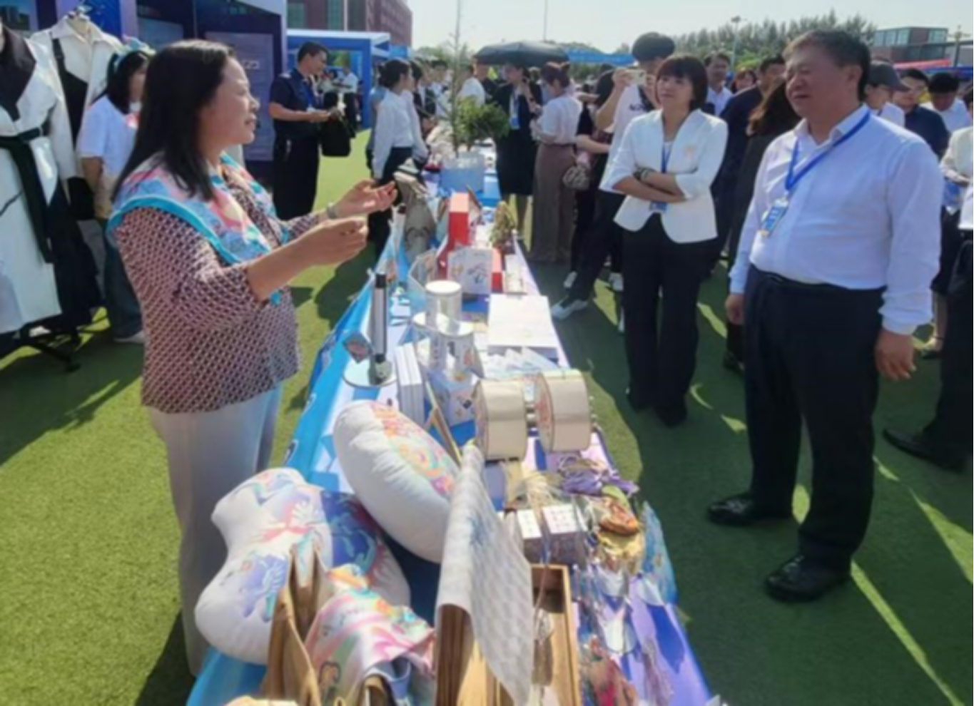 吉林省教育廳領導來到我校展臺前聽取了文化傳媒學院的“守藝•匠新”創(chuàng)客團隊的