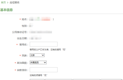 根據(jù)自己實際情況,選擇應(yīng)征地、參軍意愿以及是否符合應(yīng)征條件