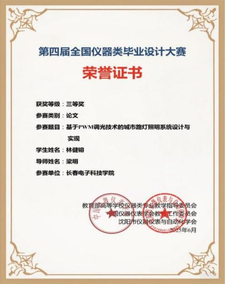 近日,第四屆全國(guó)儀器類畢業(yè)設(shè)計(jì)大賽結(jié)果揭曉,我校光電科學(xué)與工程學(xué)院林建镕同學(xué)憑借扎實(shí)的專業(yè)功底與創(chuàng)新設(shè)計(jì),從全國(guó)147所高校(含眾多985、211名校)的700余件作品中脫穎而出,勇奪全國(guó)三等獎(jiǎng)。
