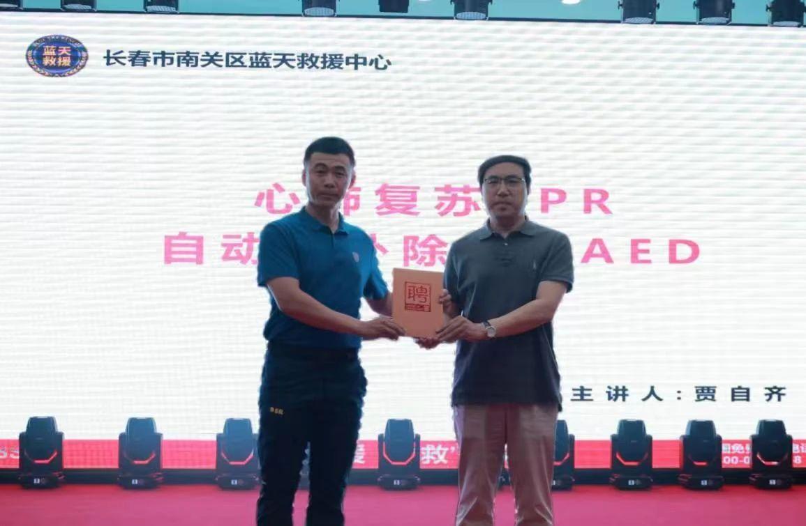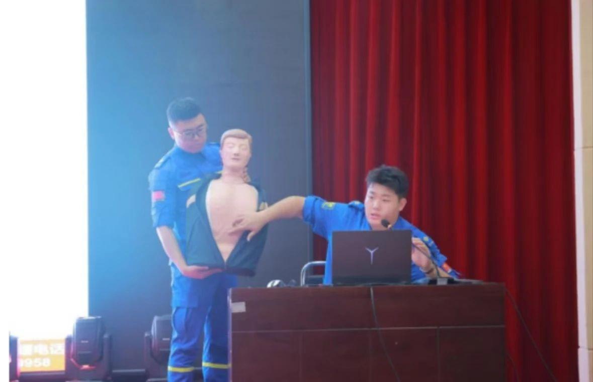 隨后,藍(lán)天救援中心行動組組長賈自齊化身“安全導(dǎo)師”,采用“理論講解+實(shí)操演示”相結(jié)合的方式,圍繞心肺復(fù)蘇、自動體外除顫器(AED)操作等核心急救技能展開專題講座,幫助在場師生構(gòu)建起系統(tǒng)的應(yīng)急救援知識體系。講座現(xiàn)場氣氛熱烈,師生們熱情高漲,積極投入實(shí)操演練。