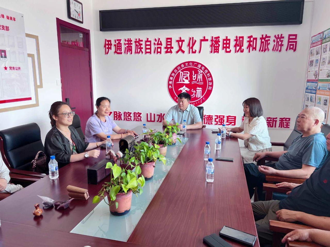 在縣文化廣電和旅游局會議室,伊通滿族自治縣副縣長李海東對校方一行表示歡迎,并詳細介紹當(dāng)?shù)胤沁z保護現(xiàn)狀。作為滿族發(fā)祥地之一,伊通現(xiàn)存滿族剪紙、刺繡、陶瓷、薩滿文化等多項非遺項目,其中“伊通滿族陶瓷燒制技藝”憑借獨特釉色配方和紋飾風(fēng)格入選省級非物質(zhì)文化遺產(chǎn)名錄。