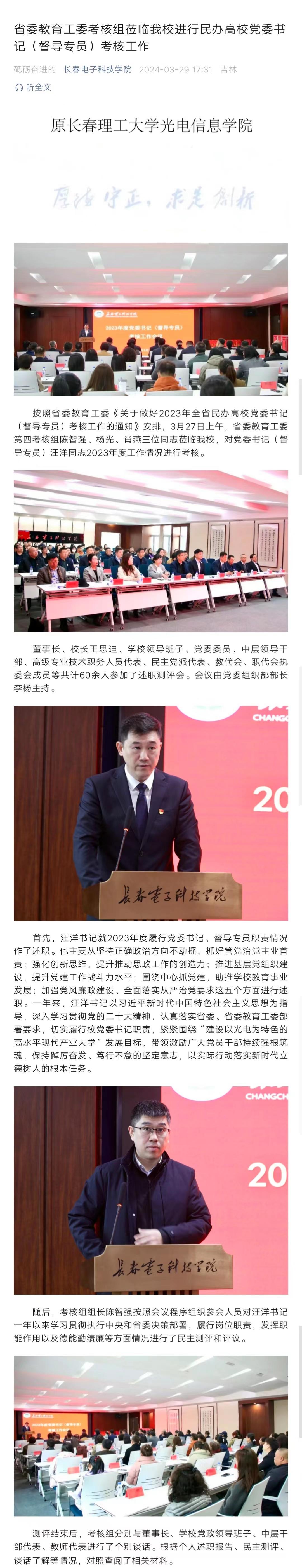 按照省委教育工委《關(guān)于做好2023年全省民辦高校黨委書(shū)記(督導(dǎo)專員)考核工作的通知》安排,3月2 7日上午,省委教育工委第四考核組陳智強(qiáng)、楊光、肖燕三位同志蒞臨我校,對(duì)黨委...