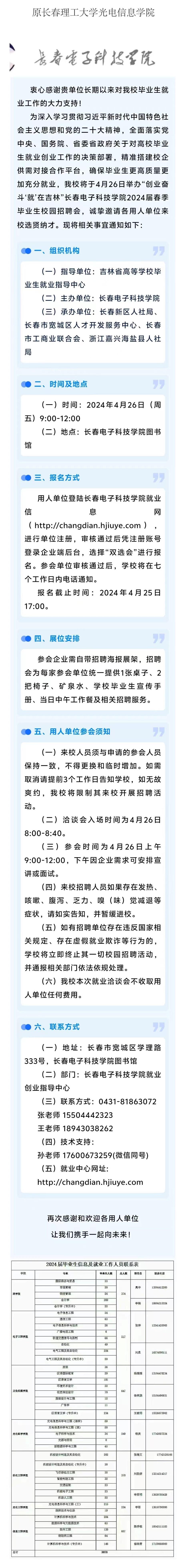 同學(xué)們看過(guò)來(lái)! 2024智匯臺(tái)州全國(guó)高校巡回招聘吉林周 長(zhǎng)春電子科技學(xué)院春季專場(chǎng)招聘會(huì)即將啟動(dòng) 眾多名企、超多崗位虛位以待 你,準(zhǔn)備好了嗎? 為促進(jìn)校企交流合作,進(jìn)一步促成我...