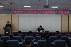 10月22日上午,我院在南校區(qū)大會(huì)議室舉辦了題為依法治校 推進(jìn)現(xiàn)代大學(xué)制度建設(shè)的專題講座,特別邀請(qǐng)省教育廳法規(guī)處處長(zhǎng)蘇佩衡同志主講,學(xué)院領(lǐng)導(dǎo)及全體副科級(jí)以上干部100余人參...