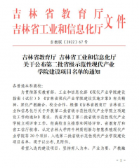 近日,吉林省教育廳、吉林省工業(yè)和信息化廳印發(fā)《關(guān)于公布第二批省級示范性現(xiàn)代產(chǎn)業(yè)學(xué)院建設(shè)項目名單的通知》(吉教聯(lián)〔2022〕67 號),我校光電智能制造產(chǎn)業(yè)學(xué)院入選第二批省級...