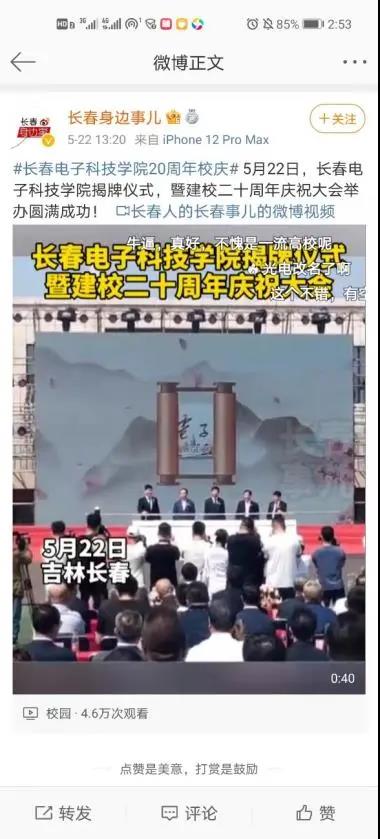 歲月不居, 時(shí)節(jié)如流。 收獲滿滿的2021, 即將畫上圓滿的句號(hào)。 回眸2021年, 盤點(diǎn)我校外宣新聞媒體記錄的 精彩瞬間, 讓我們共同回顧我們的長(zhǎng)電2021! 1.【長(zhǎng)春電子科技學(xué)院二十周年...