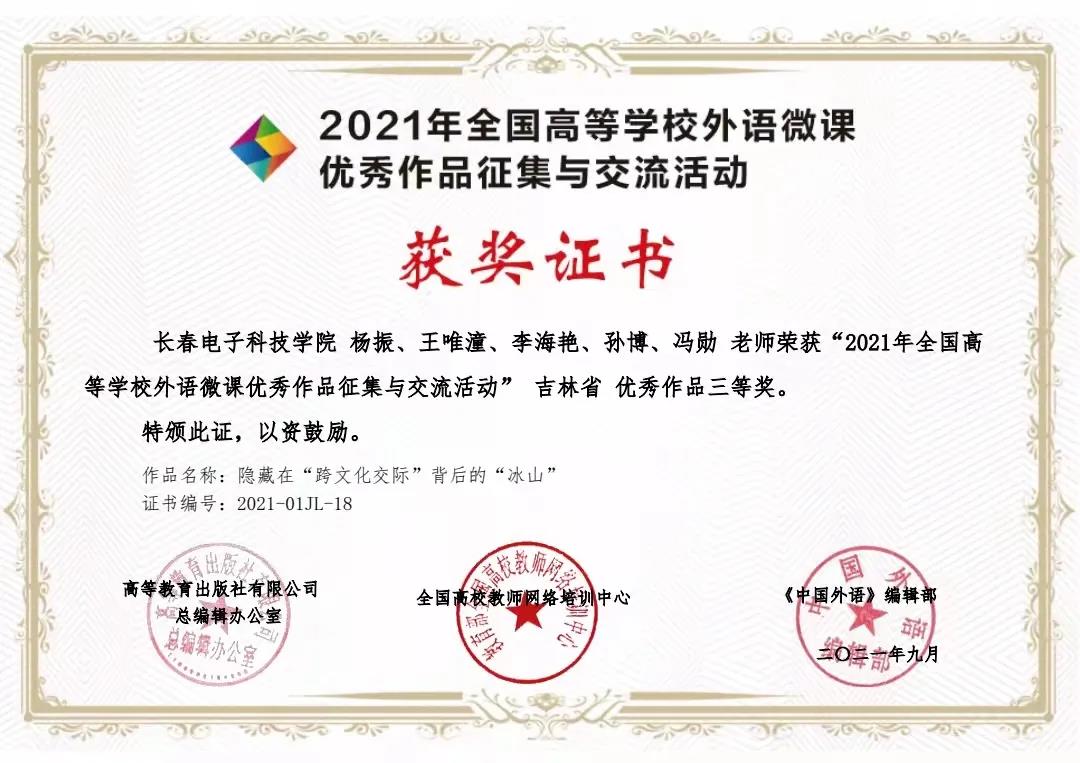 近日,由高等教育出版社、全國高校教師網(wǎng)絡(luò)培訓(xùn)中心和《中國外語》編輯部共同主辦的 2021 全國高等學(xué)校外語微課優(yōu)秀作品征集與交流活動(dòng)圓滿結(jié)束。我校大學(xué)外語教學(xué)部教師團(tuán)隊(duì)(...