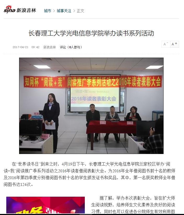 【新浪網(wǎng)】長春理工大學(xué)光電信息學(xué)院舉辦讀書系列活動