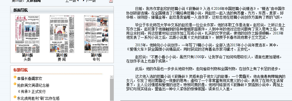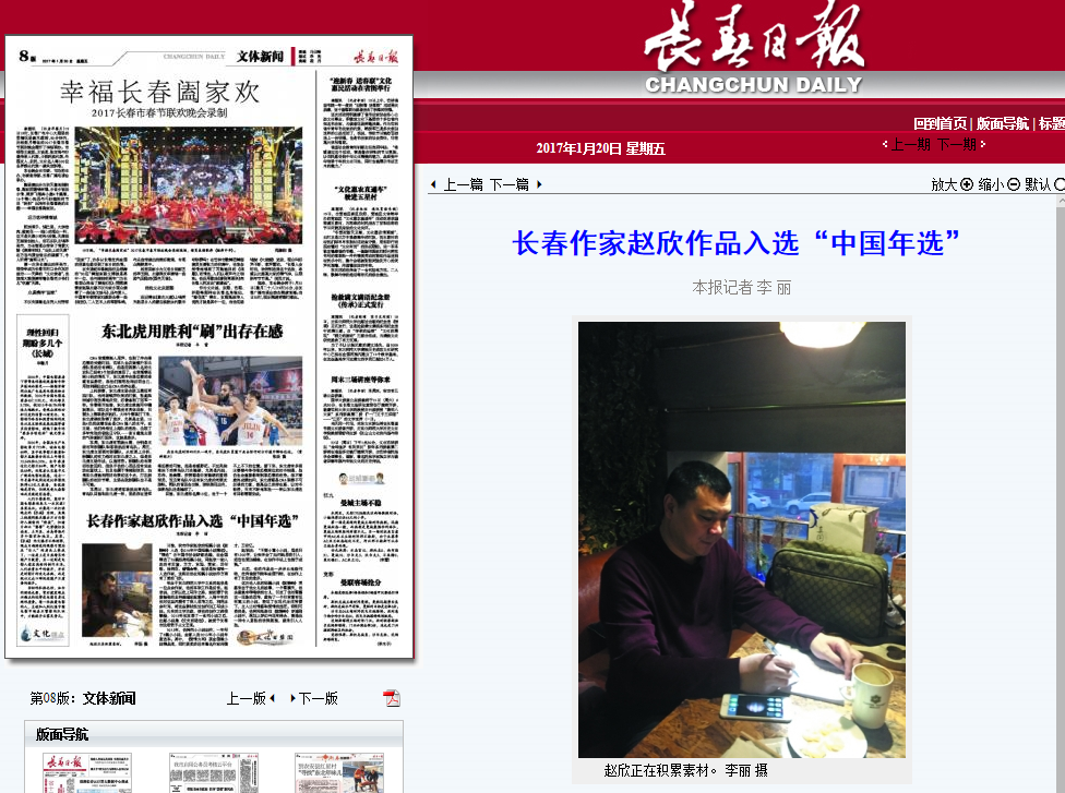 【長春日報】長春作家趙欣作品入選“中國年選”