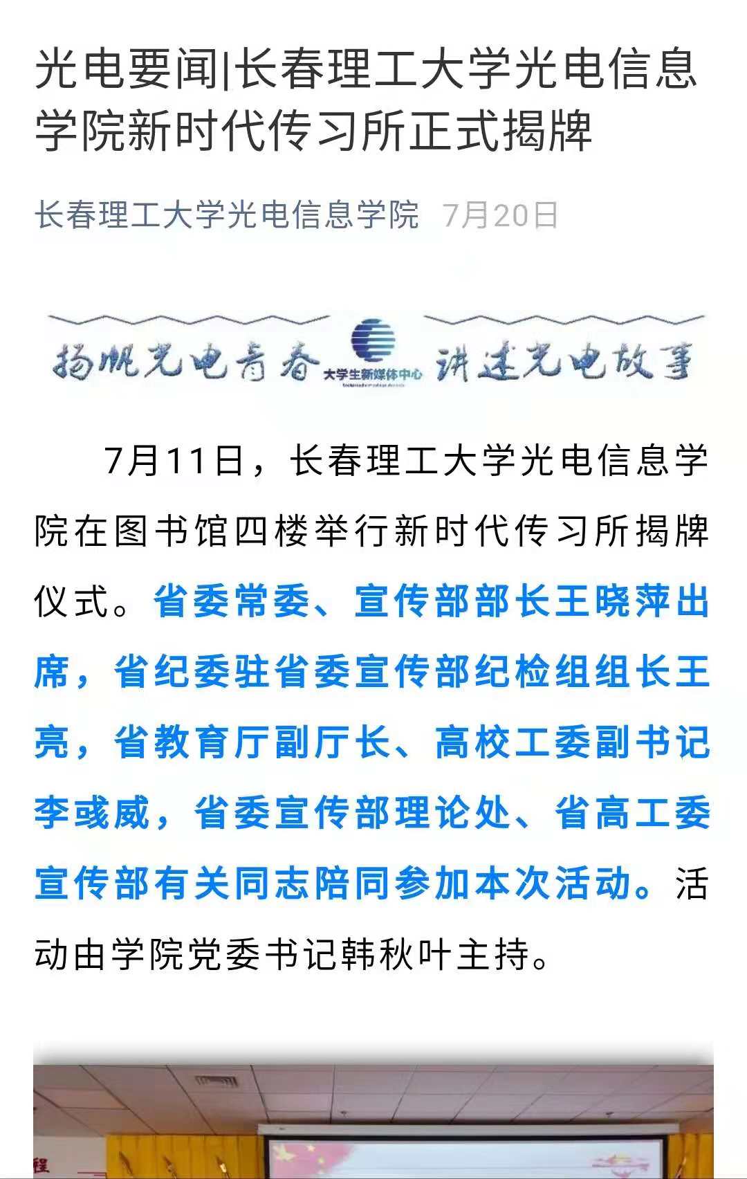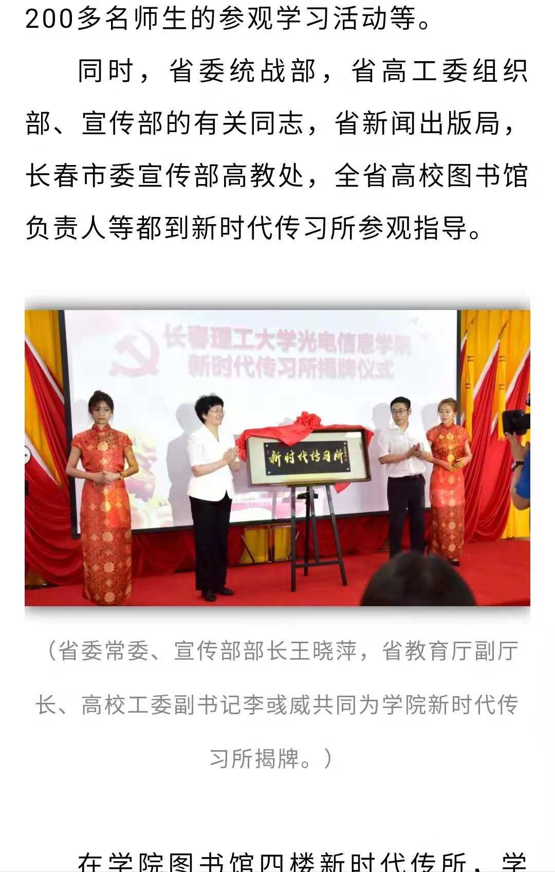 【光電要聞】長春理工大學(xué)光電信息學(xué)院新時代傳習(xí)所正式揭牌