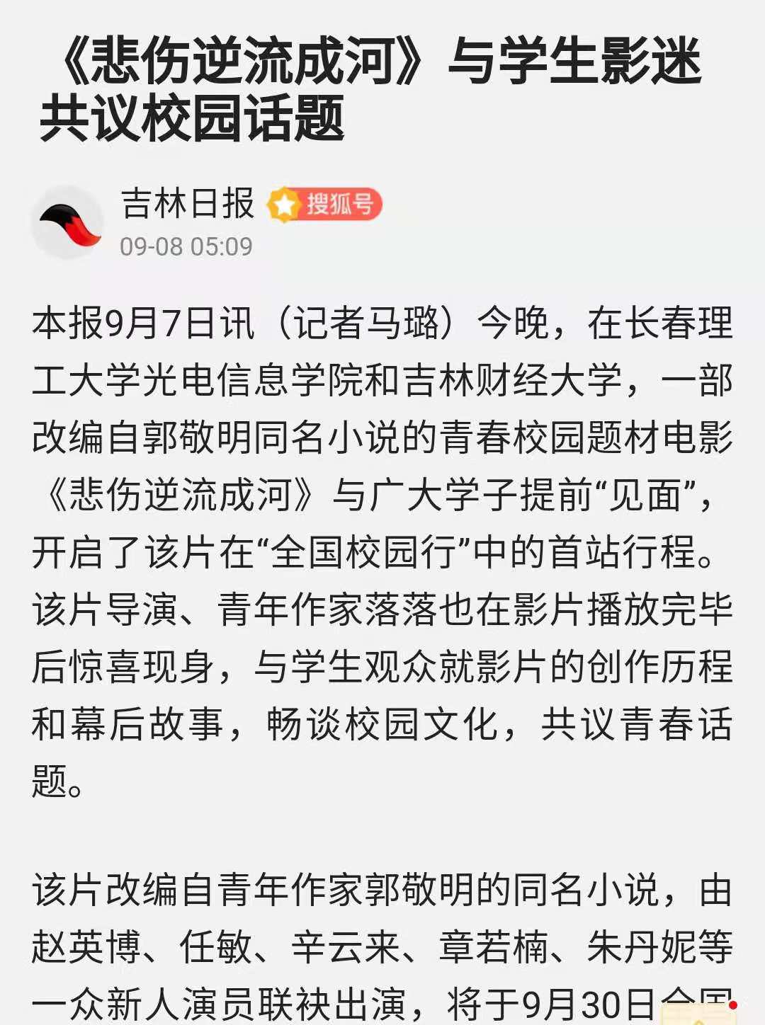 【吉林日?qǐng)?bào)】《悲傷逆流成河》與影迷公議校園話題