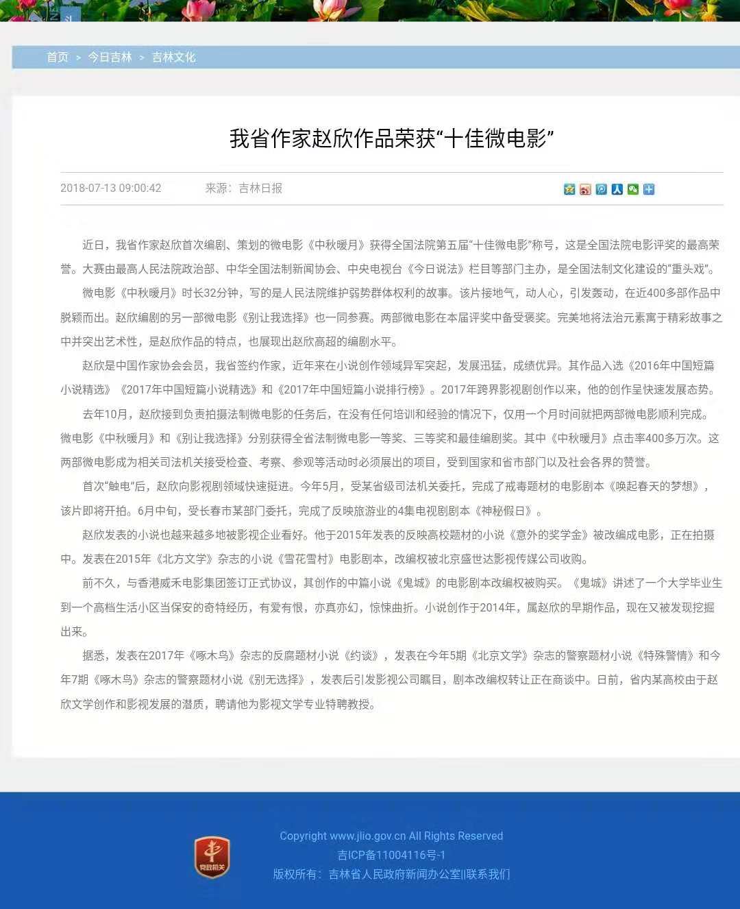 【吉林日?qǐng)?bào)】我省作家趙欣作品榮獲“十佳微電影”