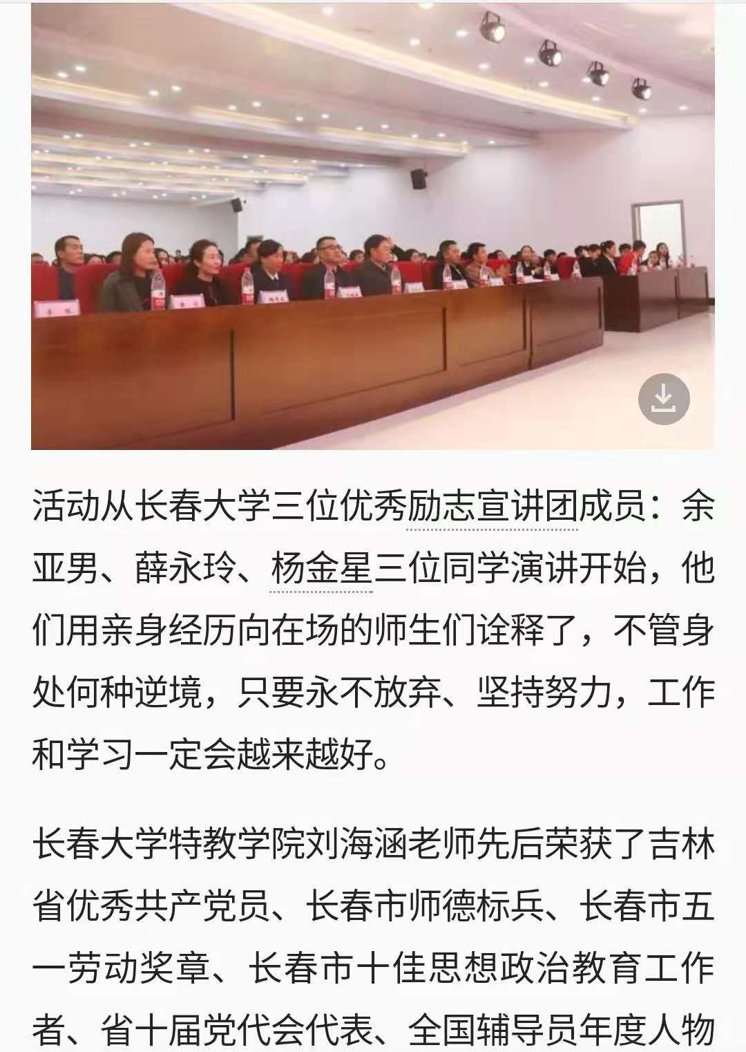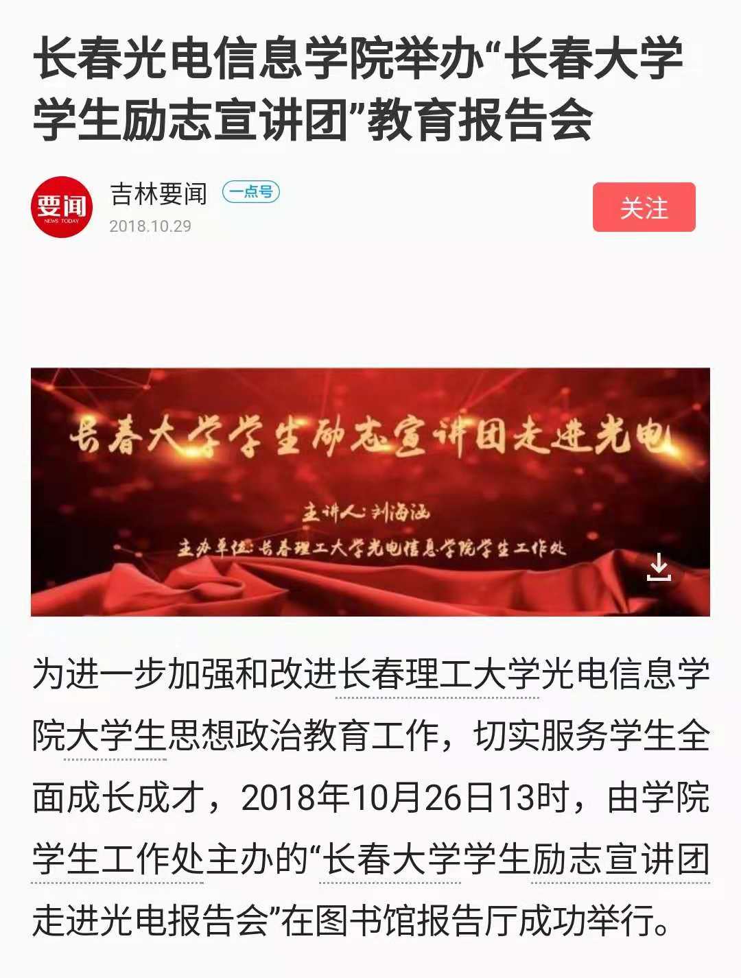 【吉林要聞】長春光電信息學(xué)院舉辦“長春大學(xué)學(xué)生勵志宣講團(tuán)”教育報告會