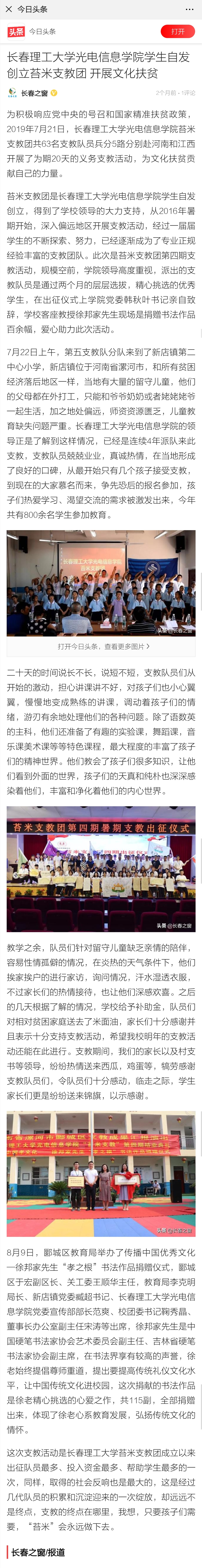 【今日頭條】長春理工大學(xué)光電信息學(xué)院自發(fā)創(chuàng)立苔米支教團 開展文化扶貧