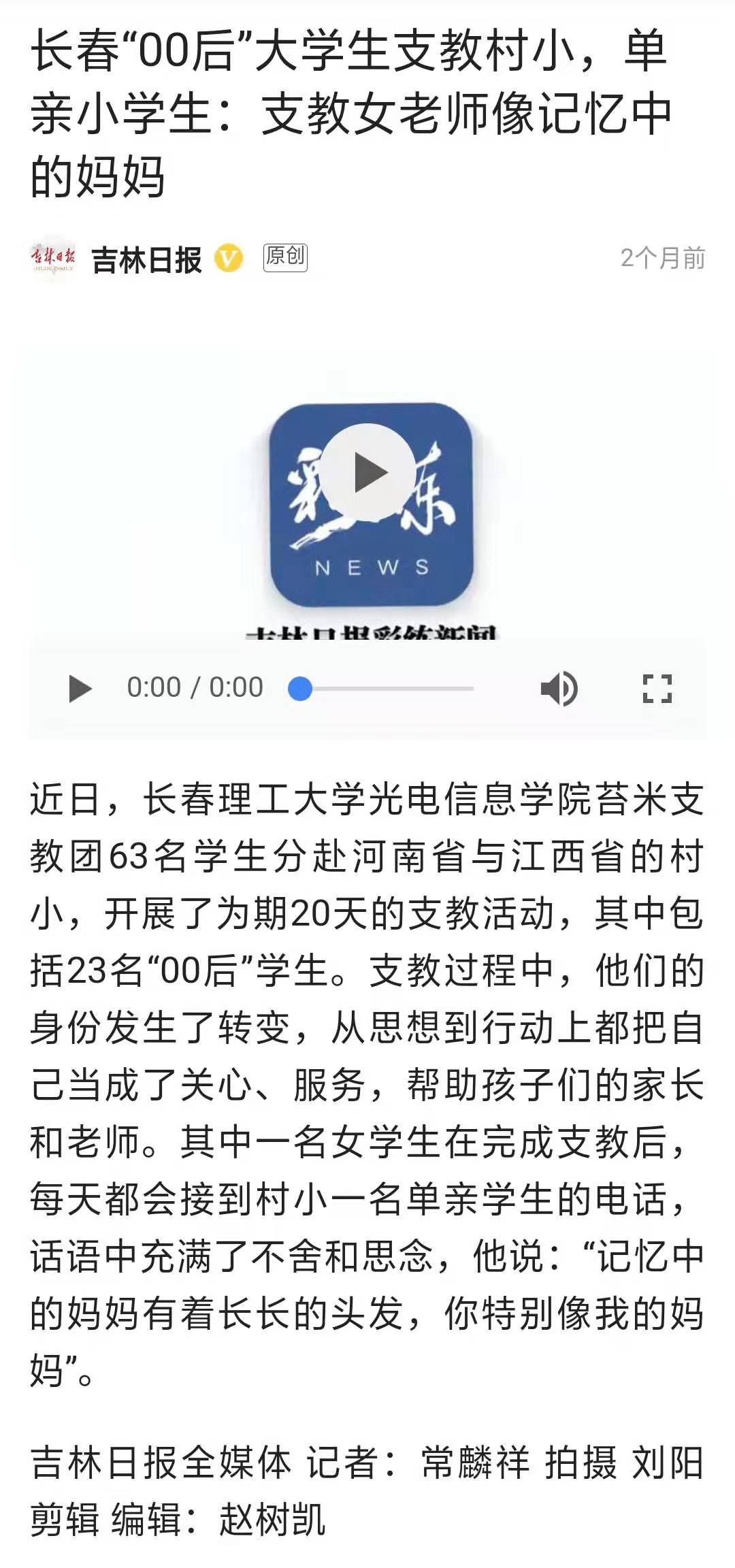 【今日頭條】長春“00后”大學(xué)生支教村小,單親小學(xué)生:支教女老師像記憶中的媽媽