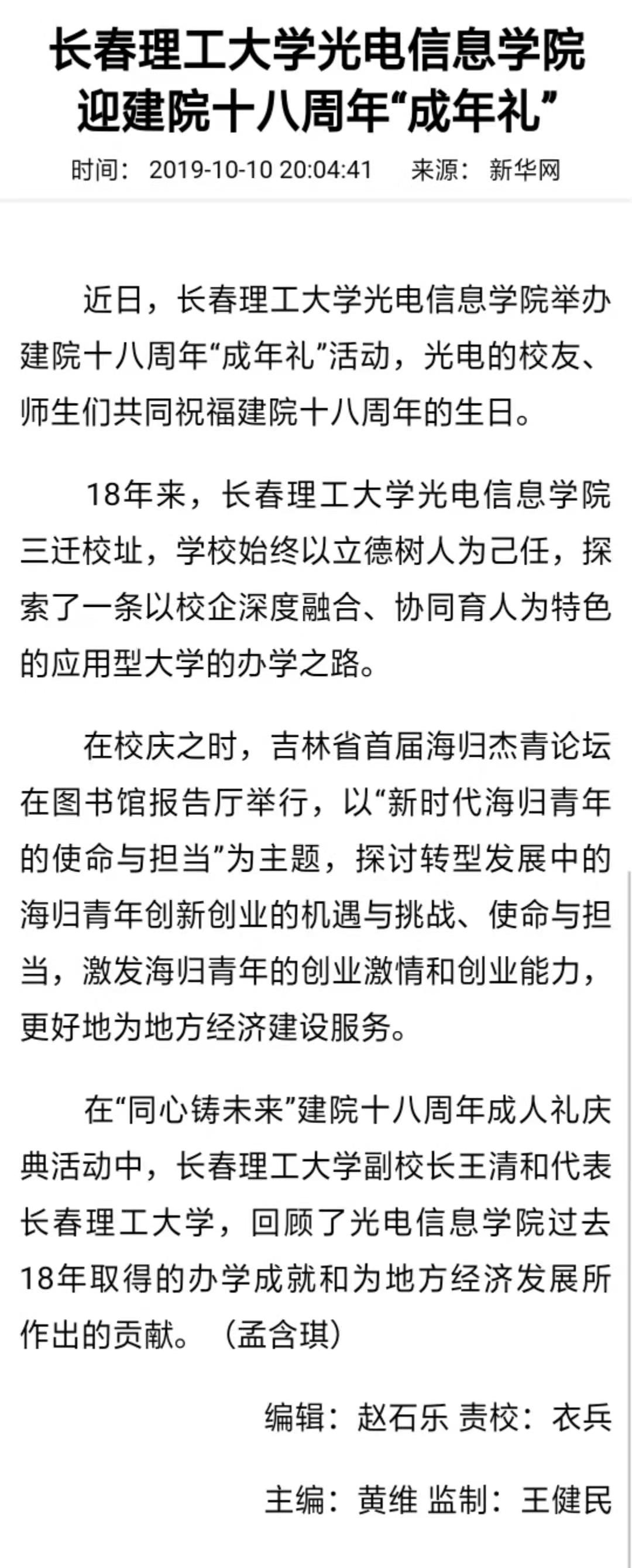 【新華網(wǎng)】長(zhǎng)春理工大學(xué)光電信息學(xué)院迎建院十八周年“成年禮”