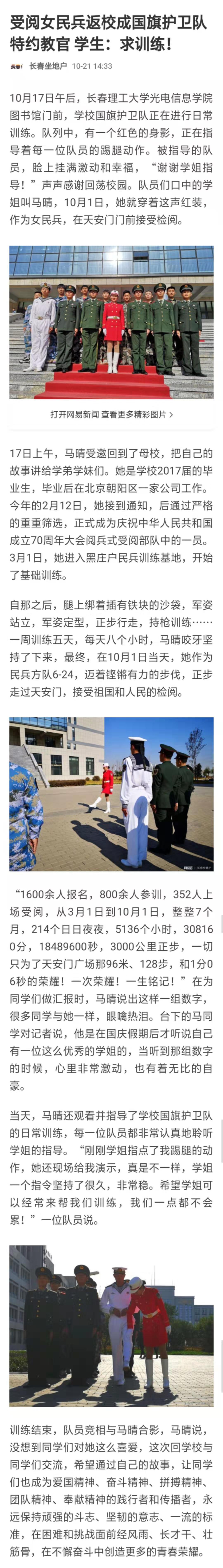 【網(wǎng)易新聞】受閱女民兵返校成國(guó)旗護(hù)衛(wèi)隊(duì)特約教官 學(xué)生:求訓(xùn)練!