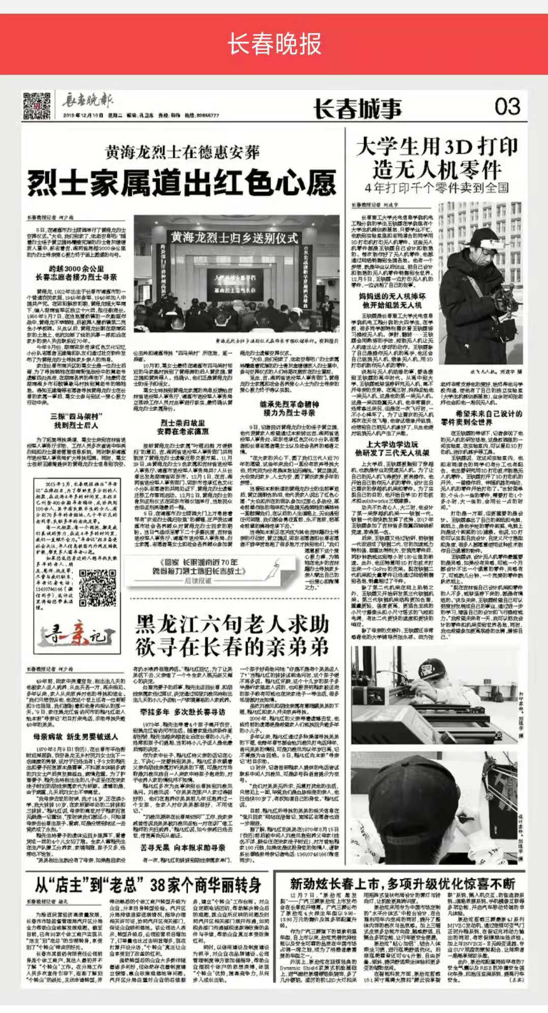 【長(zhǎng)春晚報(bào)】大學(xué)生用3D打印造無(wú)人機(jī)零件