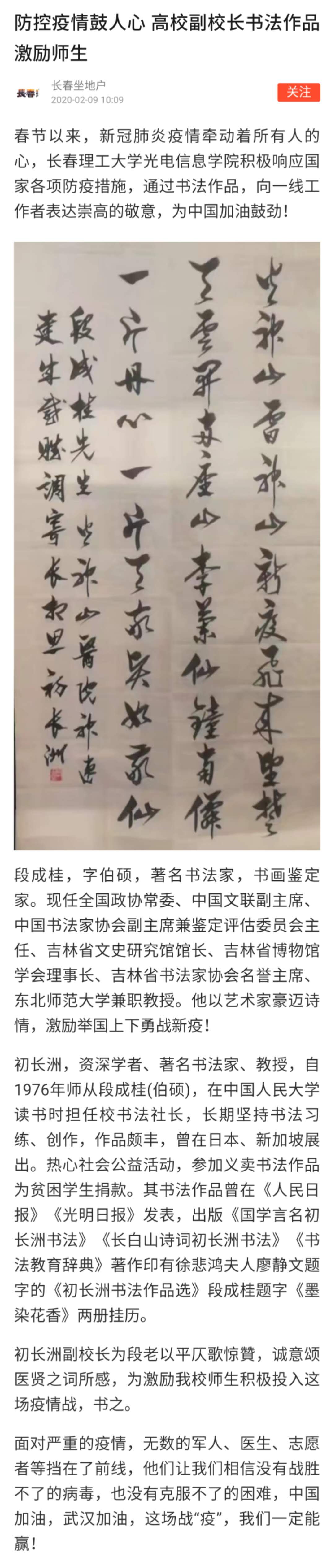 【看點(diǎn)快報(bào)】防控疫情鼓人心?高校副校長書法作品激勵(lì)師生