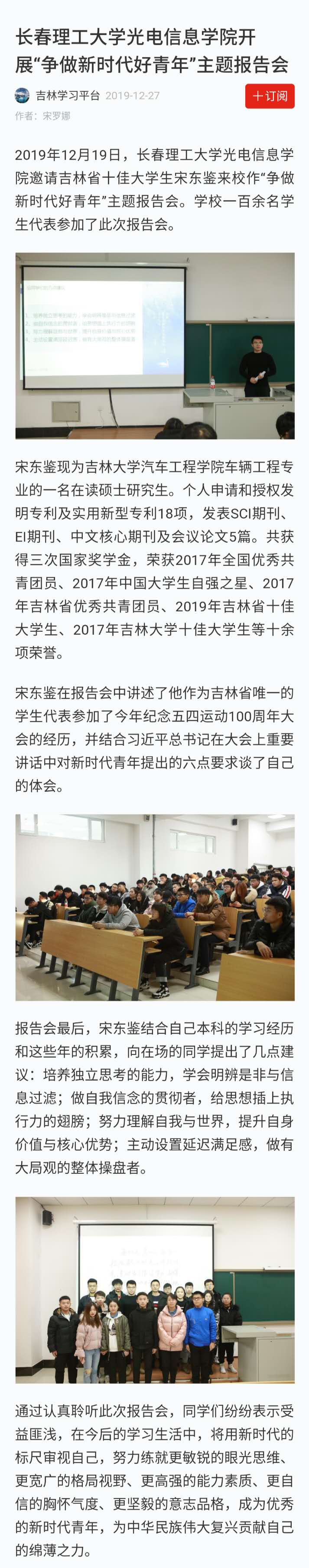 【學習強國】長春理工大學光電信息學院開展“爭做新時代好青年”主題報告會