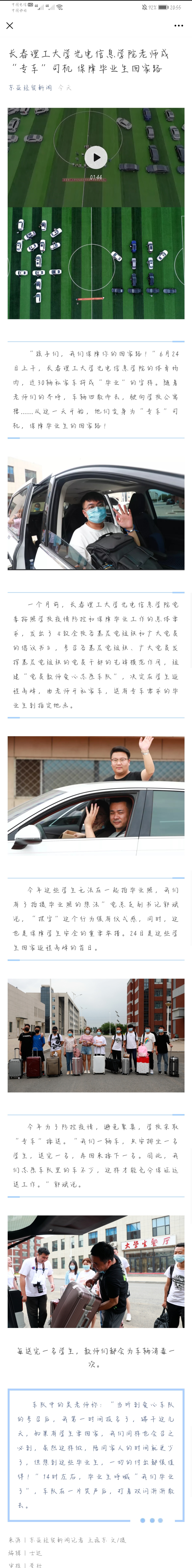 【東亞經(jīng)貿(mào)新聞】長春理工大學光電信息學院老師成“專車”司機保障畢業(yè)生回家路