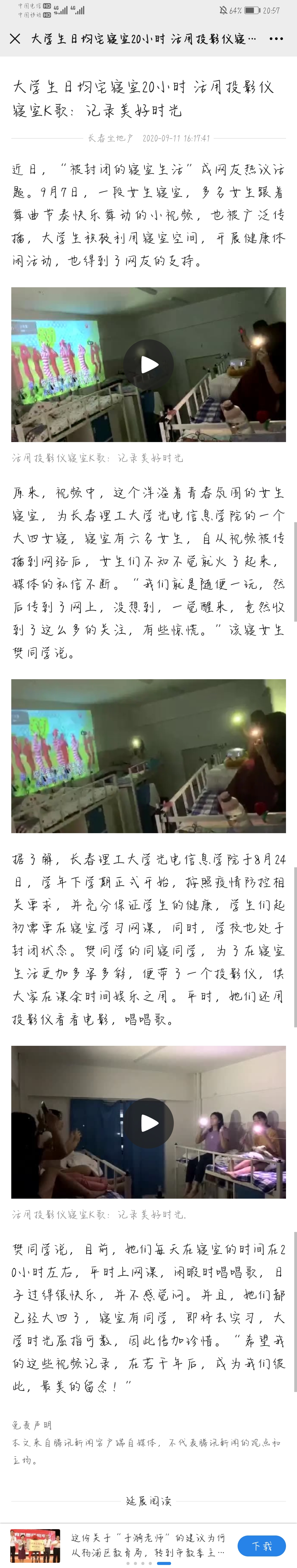 【騰訊新聞】大學(xué)生日均宅寢室20小時(shí) 活用投影儀寢室K歌:記錄美好時(shí)光