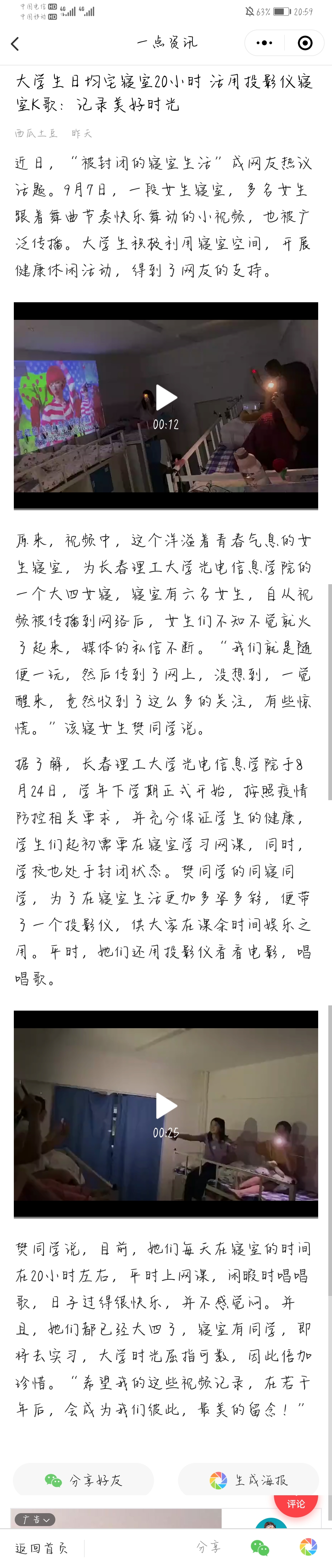 【一點(diǎn)資訊】大學(xué)生日均宅寢室20小時 活用投影儀寢室K歌:記錄美好時光