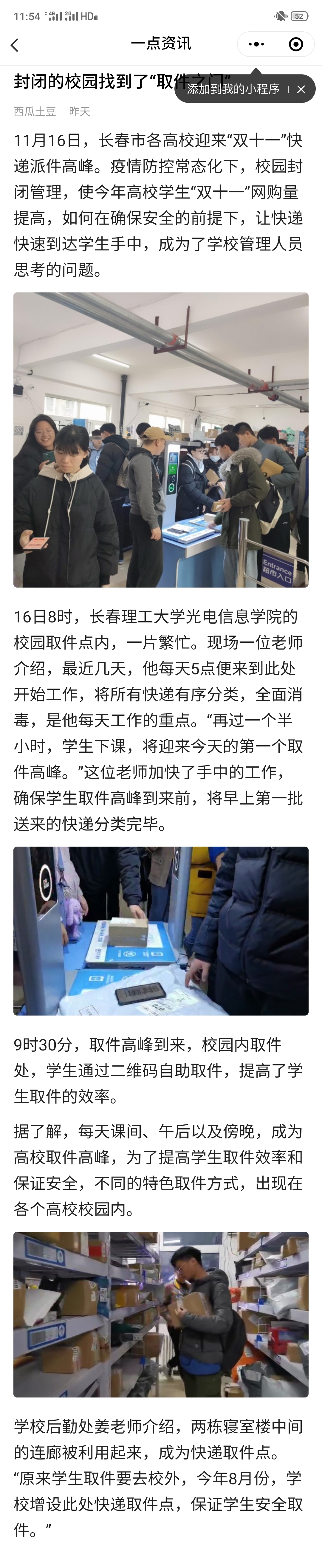 【一點(diǎn)資訊】特殊的“雙十一” 封閉的校園找到了“取件之門(mén)”