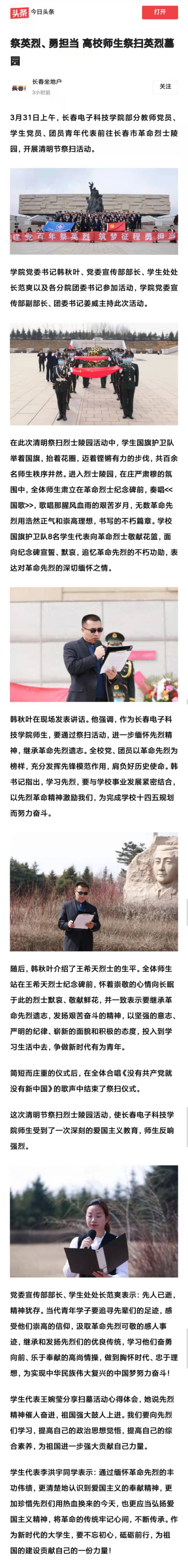 【今日頭條】祭英烈、勇?lián)?dāng) 高校師生祭掃英烈墓園