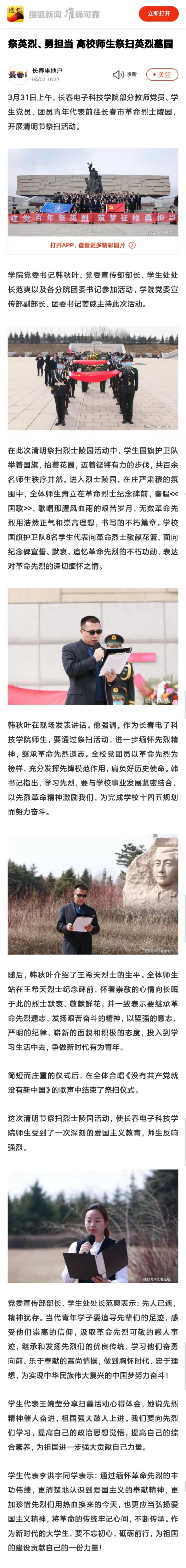 【搜狐新聞】祭英烈、勇?lián)?dāng) 高校師生祭掃英烈墓園