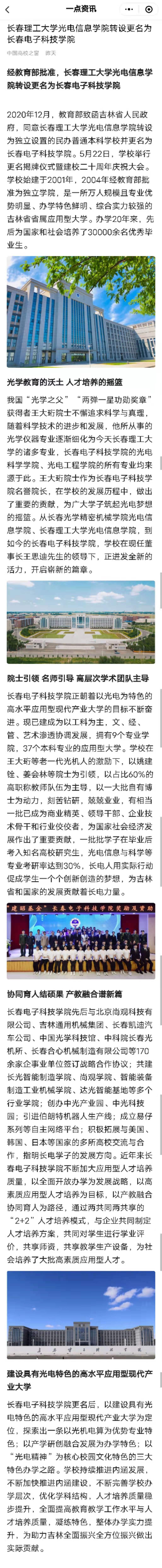 【一點(diǎn)資訊】長(zhǎng)春理工大學(xué)光電信息學(xué)院轉(zhuǎn)設(shè)更名為長(zhǎng)春電子科技學(xué)院