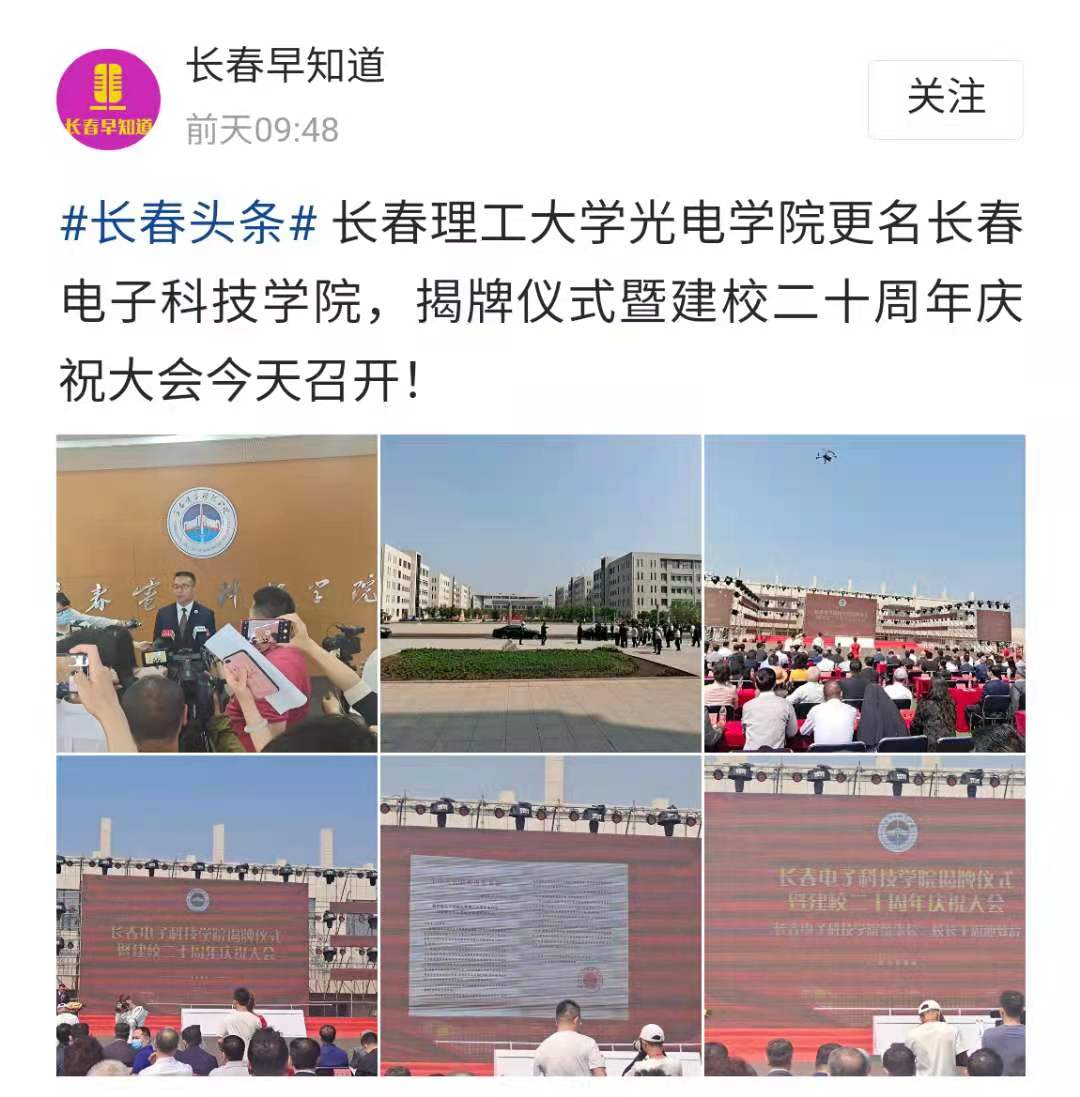 【長春早知道】長春理工大學(xué)光電信息學(xué)院更名長春電子科技學(xué)院,揭牌儀式暨建校二十周年慶祝大會今天召開