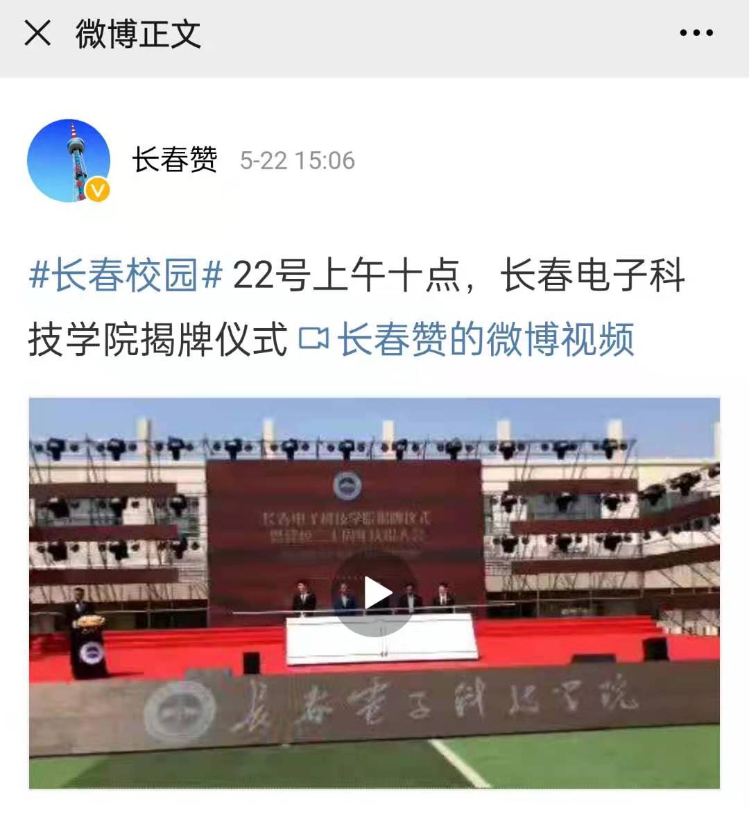 【長(zhǎng)春贊】22號(hào)上午十點(diǎn),長(zhǎng)春電子科技學(xué)院揭牌儀式