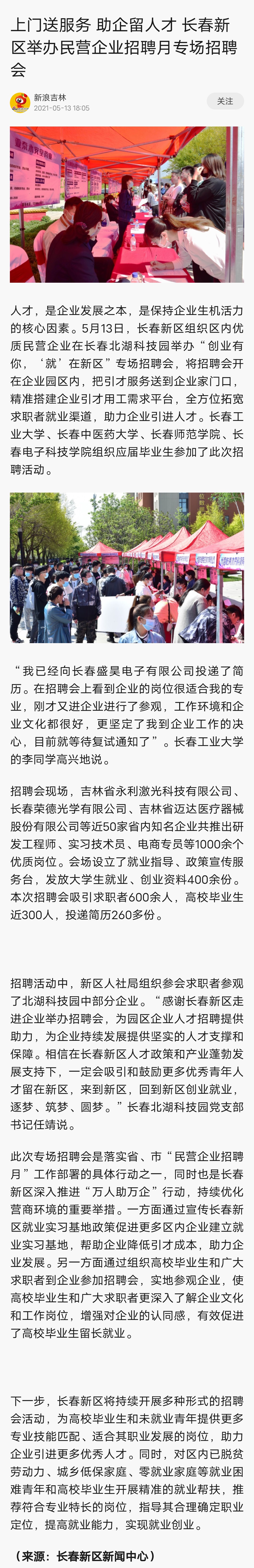 【新浪吉林】上門送服務(wù) 助企留人才 長春新區(qū)舉辦民營企業(yè)招聘月專場(chǎng)招聘會(huì)