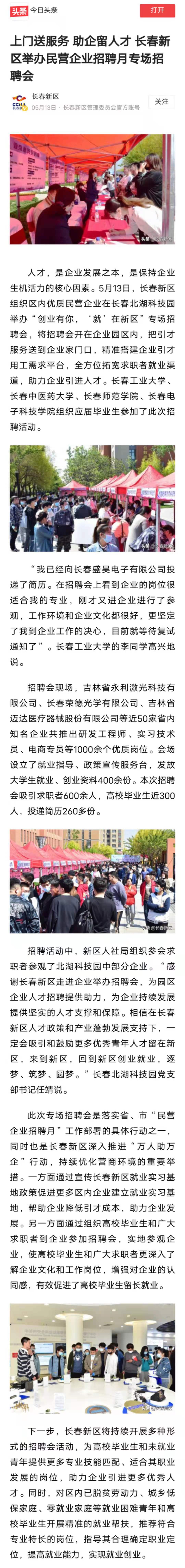 【今日頭條】上門送服務(wù) 助企留人才 長春新區(qū)舉辦民營企業(yè)招聘月專場招聘會