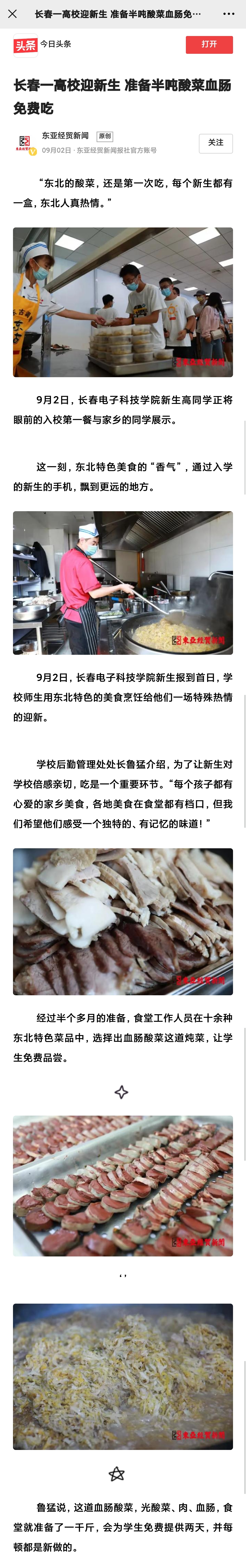 【東亞經貿新聞】長春一高校迎新生 準備半噸酸菜血腸免費吃