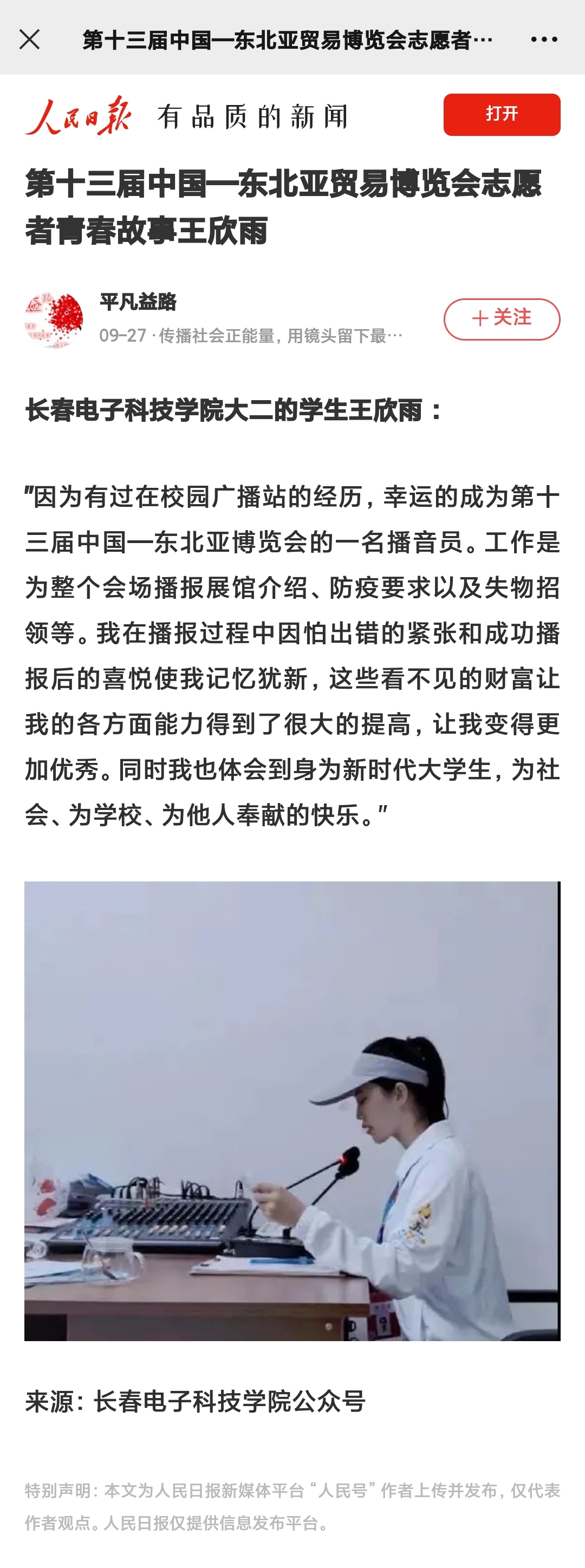 【人民日報(bào)】第十三屆中國—東北亞貿(mào)易博覽會志愿者青春故事王欣雨