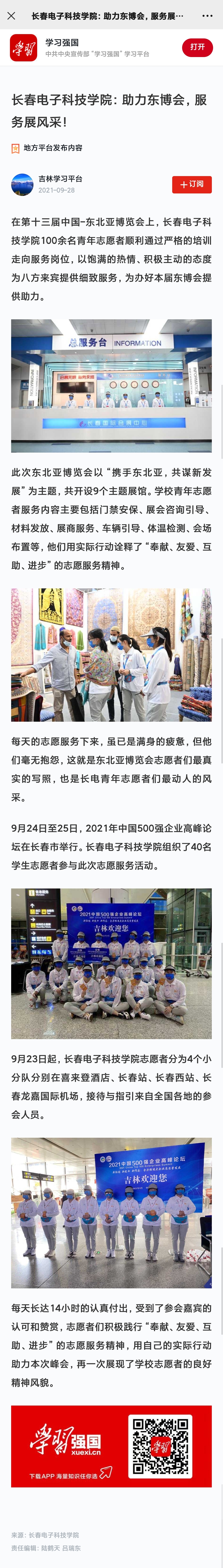 【學習強國】長春電子科技學院:助力東博會,服務展風采!