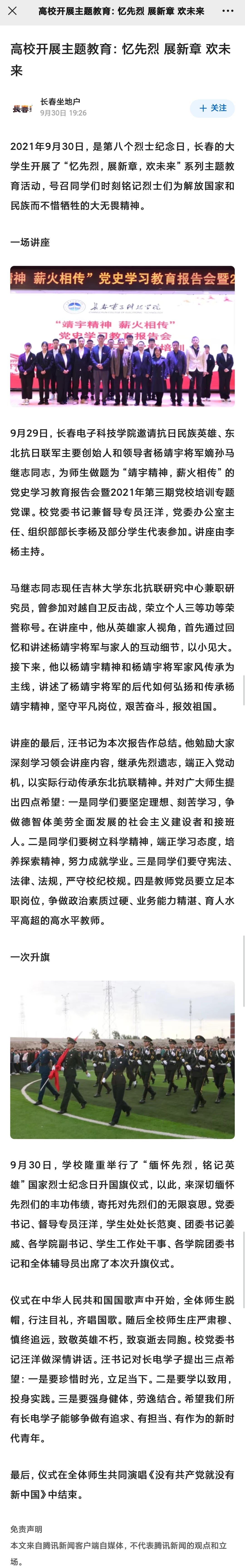【長春坐地戶】高校開展主題教育:憶先烈 展新章 歡未來