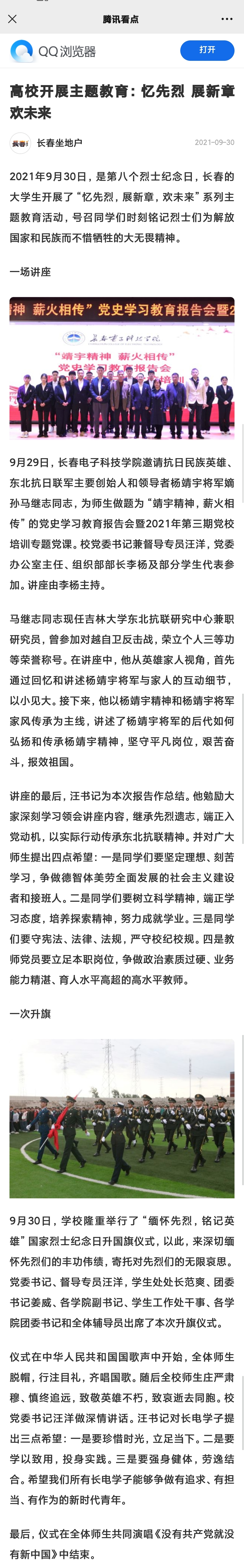 【長春坐地戶】高校開展主題教育:憶先烈 展新章 歡未來