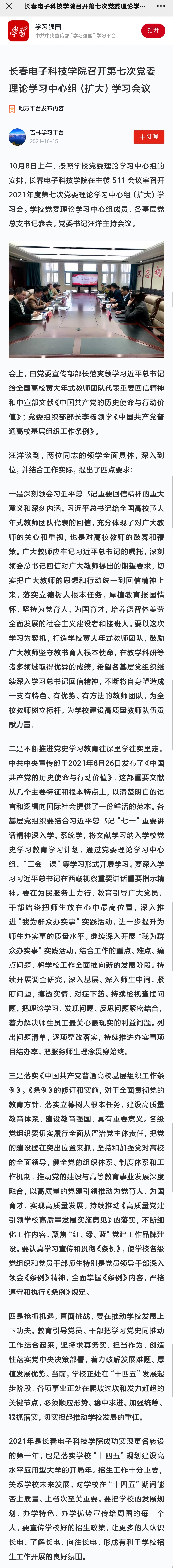 【學習強國】長春電子科技學院召開第七次黨委理論學習中心組(擴大)學習會議