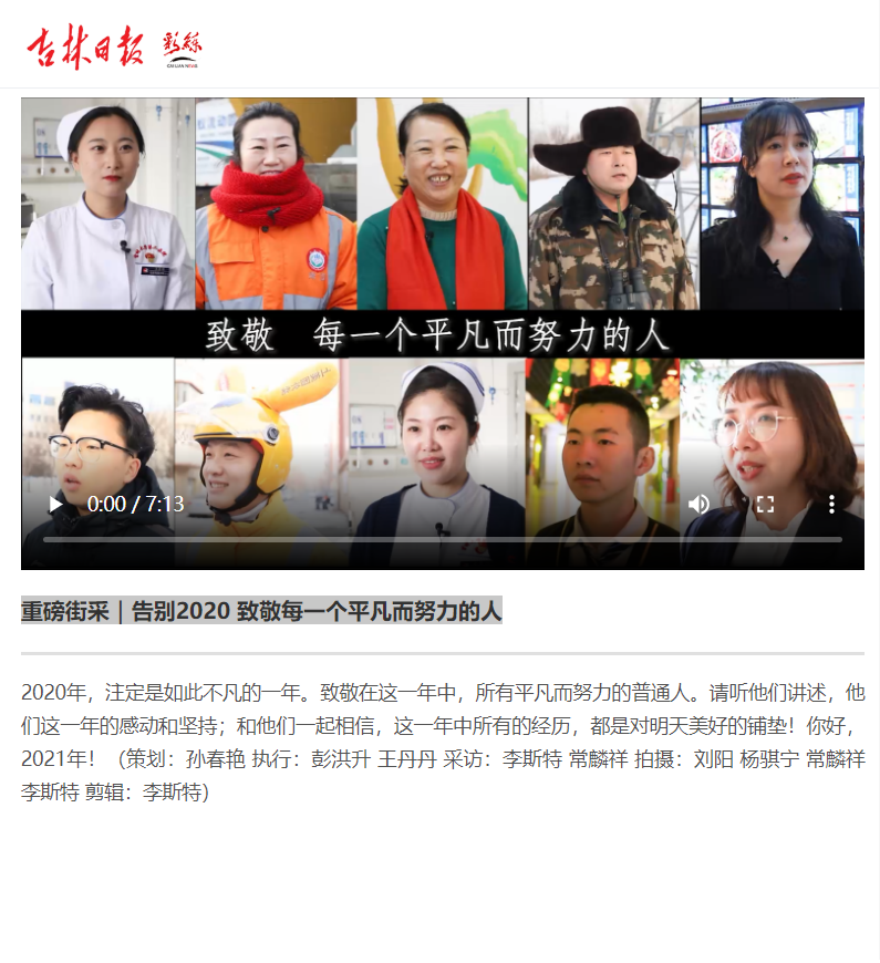 【吉林日?qǐng)?bào)】重磅街采|告別2020 致敬每一個(gè)平凡而努力的人